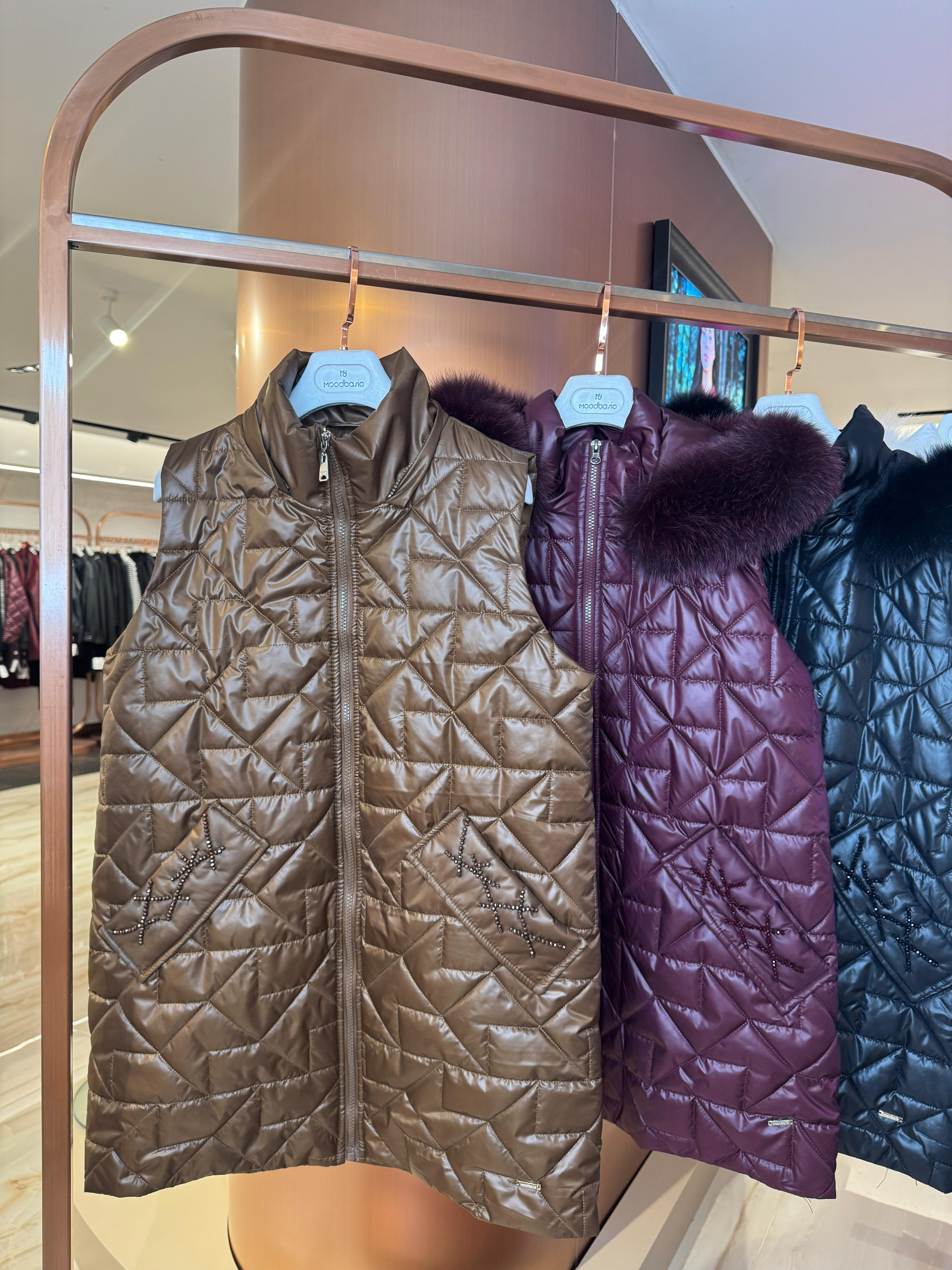 MOODBASİC 28.77 CEBİ TAŞLI KÜRKLÜ KAPİTONE YELEK-FINDIK