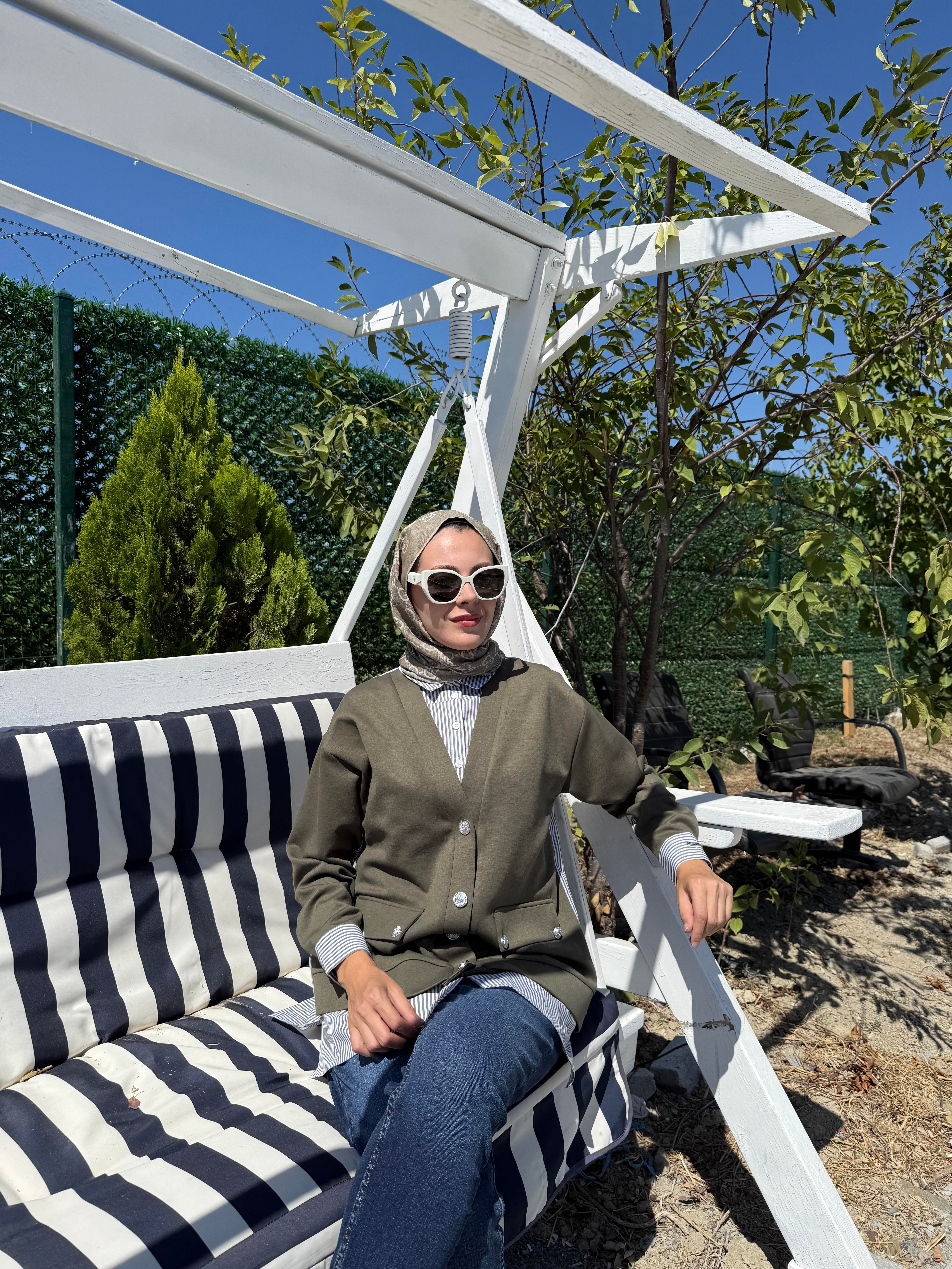 Hırka Görünümlü Düğmeli Tunik - Haki