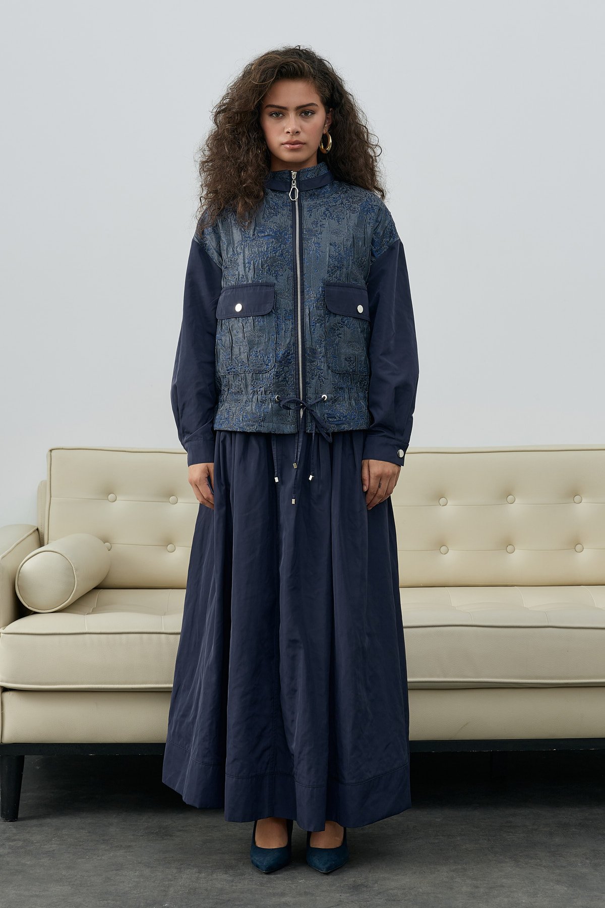 Fermaurlı Ceket Etekli Takım - Lacivert